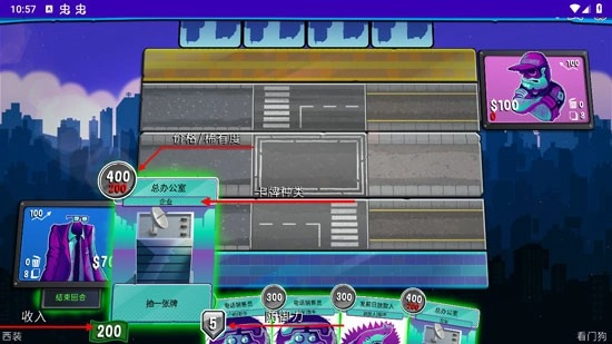 7、企业办公室不只增加收入,还会产生债务,显示为红色数字。办公室会被敌方帮手拆毁。