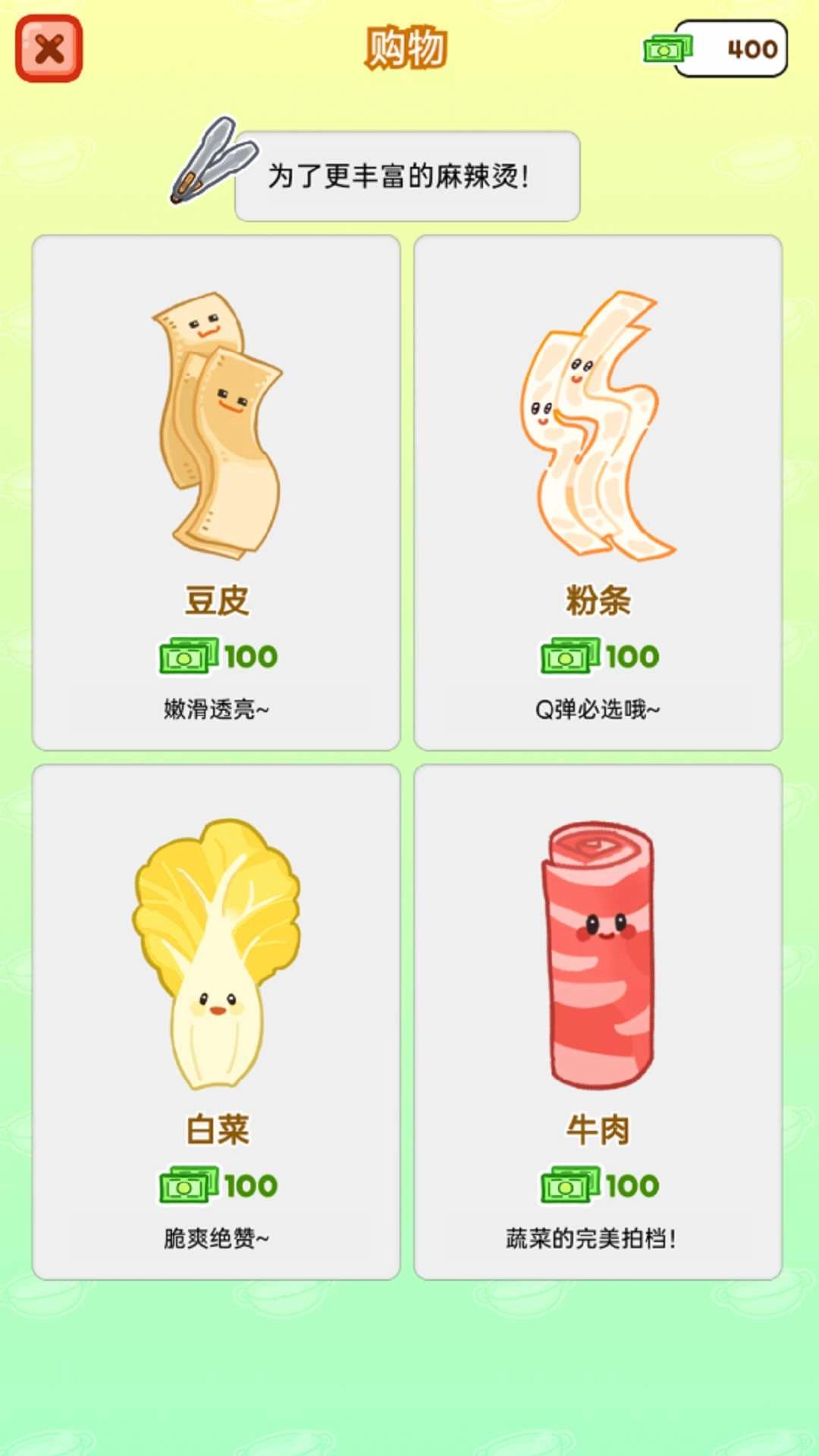 游戏里准备了各式各样的菜品让玩家挑选,大家能依据自身的偏好以及顾客的要求来自由组合,烹制出独具特色的麻辣烫美食。