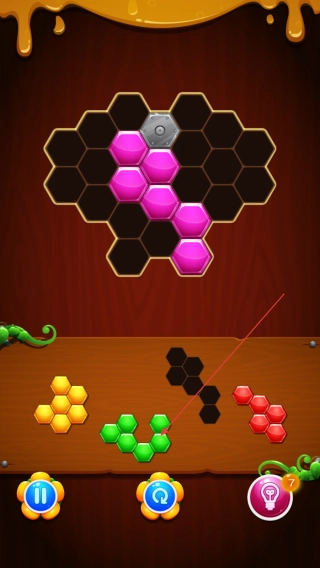 拖动随机出现的3个六角方块组合中的任意一个,把它放到棋盘的空白区域,操作简单易懂,新手也能快速上手。