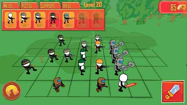 游戏里的战斗极具策略性,玩家能挑选不同类型的火柴人进行搭配,依据敌人的阵形与薄弱之处来规划作战方案。
