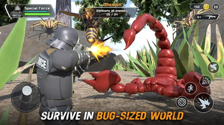 策略玩法:提升你的武器战力以对抗巨型昆虫,同时收集各类物品来完成充满刺激的任务!