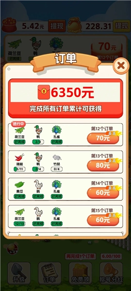 村长我好忙赚钱小游戏是一款模拟经营类红包游戏,玩家将在游戏里经营一座农场,需要持续完成各类不同的任务。过程中既可以种植多样的农作物,也能养殖各种小动物,在用心培育后静候收获时刻。游戏内设有任务系统,完成任务就能获取丰厚的红包奖励,同时还有形形色色的道具可供玩家使用,感兴趣的话就来体验看看吧。