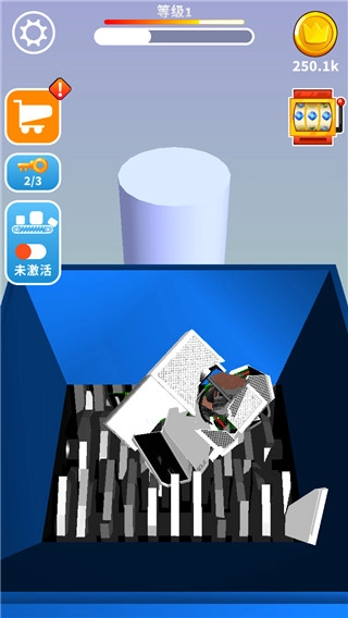 玩家能够挑选各式各样的粉碎机,像液压粉碎机、颚式破碎机、巨型碾压机之类都在可选范围内,每一种机器对应的粉碎方式和最终效果都各有特点。操作起来并不复杂,大部分时候只需点击或者滑动屏幕,就能操控粉碎机的开合与移动,把要处理的物品送进粉碎仓里。 游戏中可供粉碎的物品十分多样,不仅有日常常见的塑料瓶、易拉罐、家具,还有难度更高的汽车、家电、废弃建筑材料,甚至包含一些充满趣味的道具(例如巨型玩偶、虚拟装备)。不同物品的硬度存在差别,所以粉碎它们所需的时间和步骤也有所不同,举例来说,粉碎汽车就得先把零件拆解下来,之后再一步步碾压成废铁。 游戏设置了数量众多的关卡,每个关卡都会明确规定需要粉碎的物品类型以及具体目标(比如“粉碎100个玻璃瓶”“在1分钟内碾碎一辆轿车”)。顺利完成关卡后可以得到金币奖励,这些金币能够用来解锁更高级别的粉碎机、提升机器的功率与效率,或者开启新的粉碎场景。