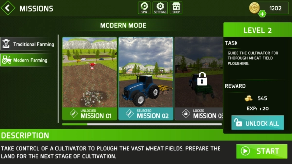 选择农场模式时,有现代农场和传统农场这两种不同的模式可供挑选,而且在不同的模式里会设置不同的任务关卡。