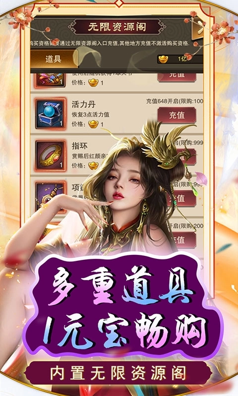 上线福利:GM2权限、一亿元宝、一亿铜币、一亿粮草、一亿士兵