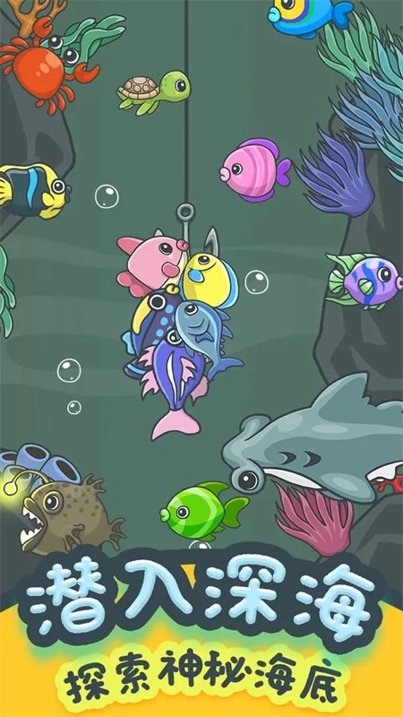 点击即可释放鱼钩,通过左右滑动控制鱼钩收回方向