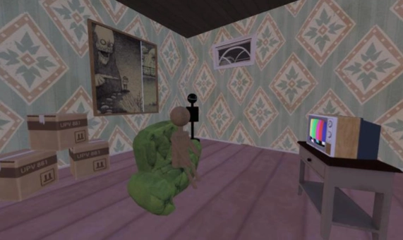 13、令人毛骨悚然的事情出现了,我们的邻居发现了我们,然后就来抓我们了,只是他这姿势和表情实在让人觉得有些恐惧,再加上游戏中会出现恐怖的音效,小编看到邻居走过来的时候瞬间鸡皮疙瘩都起来了。