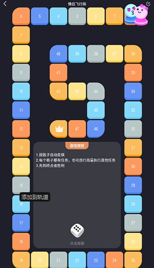 情侣飞行棋高阶版是一款情侣飞行棋游戏,游戏采用简洁清晰的操作界面,直观易懂的操作逻辑无需复杂教程,玩家便能快速上手沉浸其中。无论男女玩家,都能轻松解锁游戏乐趣~ 开发团队更会定期更新丰富内容与特色活动:新增情境化互动玩法、趣味动态任务链、跨平台同步功能等,持续为游戏注入新鲜感与挑战性,让情侣们在携手冒险中解锁更多甜蜜瞬间,尽享长久陪伴的游戏乐趣。