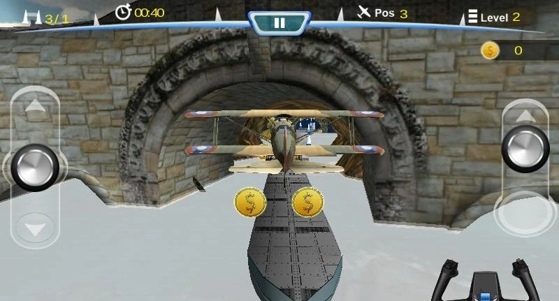 操控飞机竞速:借助虚拟按键调节飞机的速度、转向与俯仰,在赛道间敏捷穿行,规避障碍,赶超对手,奋力冲向终点。