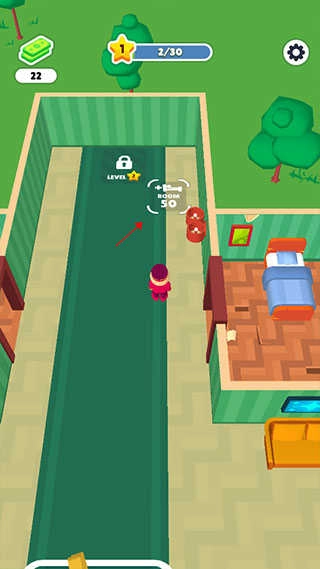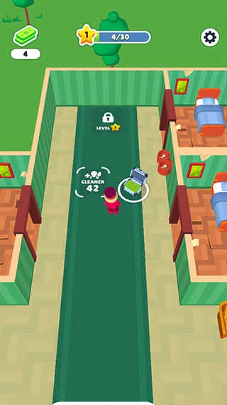 为客人安排好房间后,待他们入住结束,需及时进行清理打扫,这样才能继续接待下一批客人。只需操控小人移动到待清理的区域附近,系统便会自动启动清理程序。