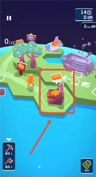 在关卡挑战中,通过砍伐木材,获得最初的资源
