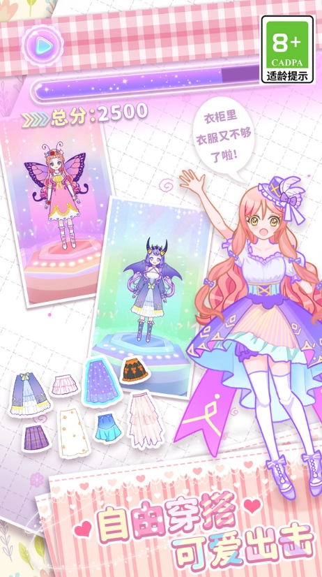 拥有超过800款精致服饰单品,涵盖公主礼服、时尚休闲装、奇幻主题造型等多种风格。
