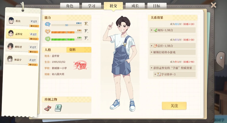 恋人剧情:正常表白→需要达到学霸且女生里好感度最高