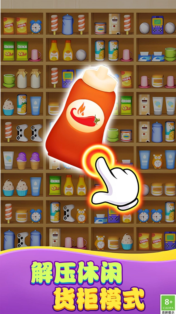 移动与选择:用手指触摸屏幕,就能选定货柜里的物品。要是想调整它们的位置,你可以按住物品拖动来交换;要是遇到两个相邻且款式相同的物品,直接点击就能把它们消除掉。