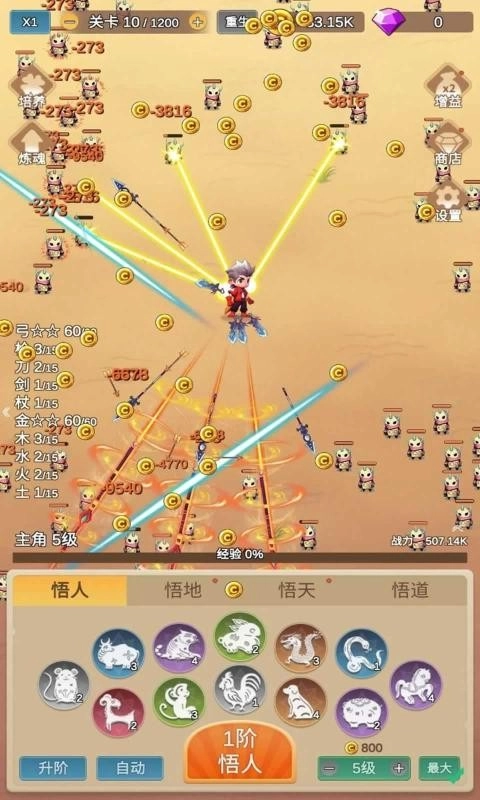 因为怕疼只能无敌,玩家因怕疼而踏上无敌之路,可通过悟人、悟地、悟天、悟道等途径持续变强,挑战海量关卡。这款游戏上手轻松,无需复杂操作,玩起来毫不费力。只要凑齐各类羁绊,就能轻松应对成群敌人,体验畅快的割草式战斗。
