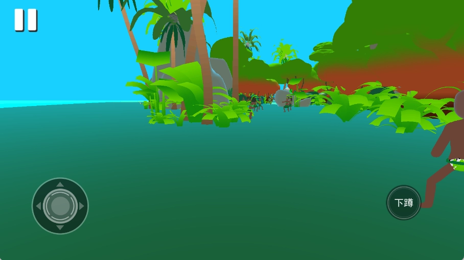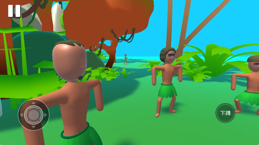 角色的移动由左侧方向键控制,右侧按键则用于完成下蹲与互动的动作。