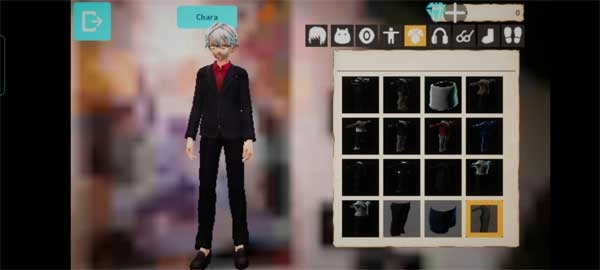 1、打开游戏后,首先需要设定角色形象。点击“Chara”按钮可以切换角色性别,待服装、发型和脸部细节都调整完毕后,点击左上角的退出按钮即可。
