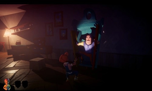 2、一旦被邻居发现,游戏就会转变为追逐战,甩掉恐怖的邻居,对他的房子进行全面探索。