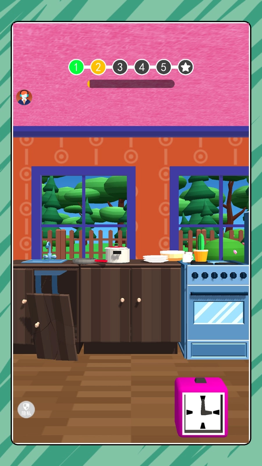进入游戏后,可从客厅、浴室、实验室等场景里挑选目标房间。