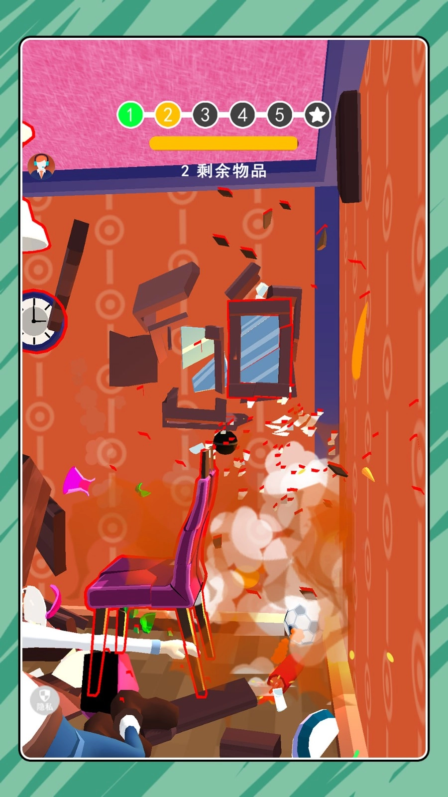 针对不同场景的材质来挑选合适的道具,比如用锤子敲碎木质家具,用炸药炸开坚硬的墙壁,让道具的特性和目标材质相匹配,这样能提高破坏的效率,还能增强视觉上的爽快感。