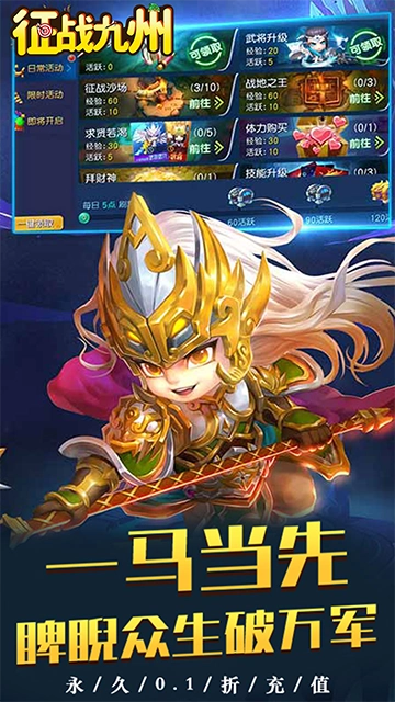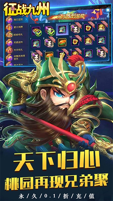 《征战九州(0.1折萌将争锋)》是一款以三国为背景的策略卡牌游戏。游戏上线即赠0.1折充值特权,玩家几乎无需门槛就能畅享高额充值福利。开局即可领取丰厚VIP奖励,参与充值返利活动更能享受“充多少返多少”的超值回馈,轻松获取稀有装备与高级武将,快速提升自身战斗力。此外,游戏提供了丰富的三国角色选择,每位武将都具备独特技能与战斗风格,玩家可根据关卡敌人的特性自由搭配阵容,以实现战斗效果的最大化。