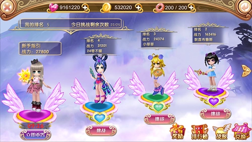 此为迅速提升角色等级而设的玩法,点击主界面【挑战】按钮选择进入,挑战难度有简单、普通、困难等五种。