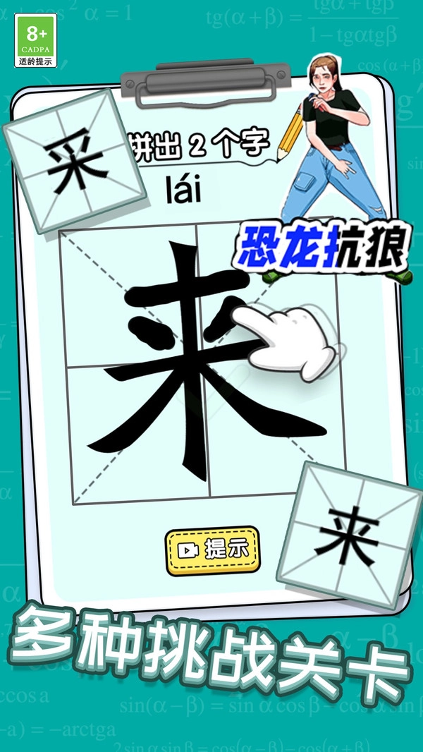 谜题的难度和汉字识别能力紧密相关,基础关卡围绕常用汉字设计,具备基础识别能力就能顺利通关,适合不同水平的玩家。