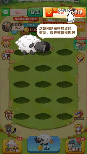 很多人玩《肥羊的幸福生活》这款游戏,是被宣传里的“能赚钱”吸引的,可实际上在这个游戏里,玩家根本赚不到多少。虽然每次合成羊都能领红包,比如合成2级羊能拿到28的红包,但游戏里的红包兑换比例是1:100,算下来也就两毛钱。