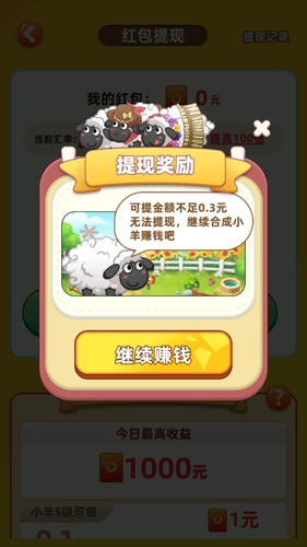 5、如果金额不够的话,你们就可以去继续赚钱了,继续赚钱的方式也就是你们继续去合成小羊了!