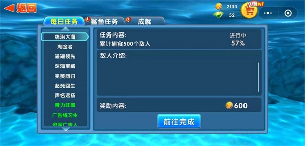 不氪金的情况下如何快速升级鲨鱼,签到、看广告、做任务,点开后你会看到自己任务的进程,基本上那个精力旺盛、游戏分享这些不知不觉已经完成了,这些也可以领导不同程度的金币或者钻石的奖励。