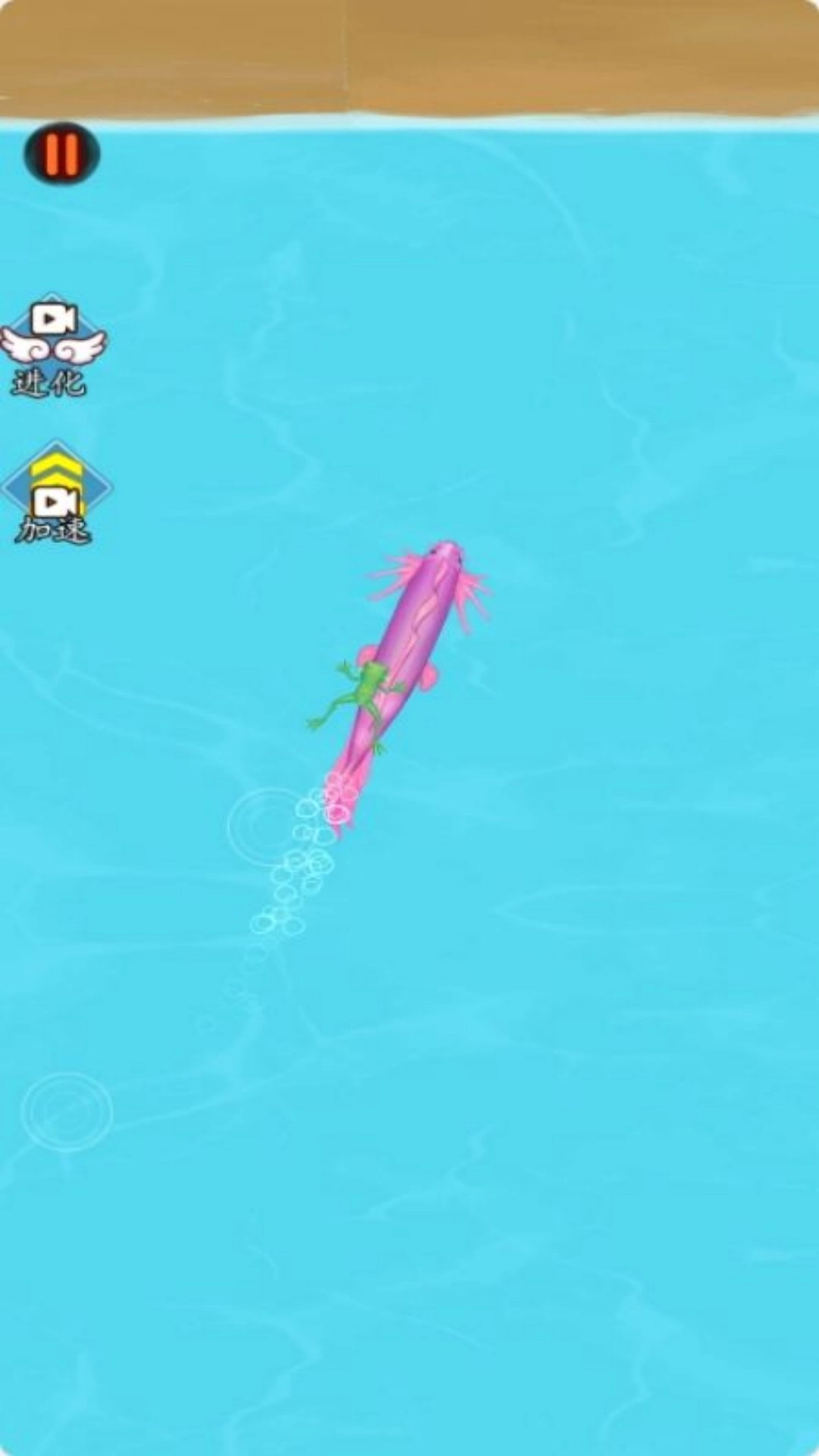 用手指在屏幕上滑动,就能操控小蝌蚪的移动方向。先从吞食其他小蝌蚪起步,逐步完成进化;不过得留意躲开那些体型比自己大的生物,它们可是很危险的!