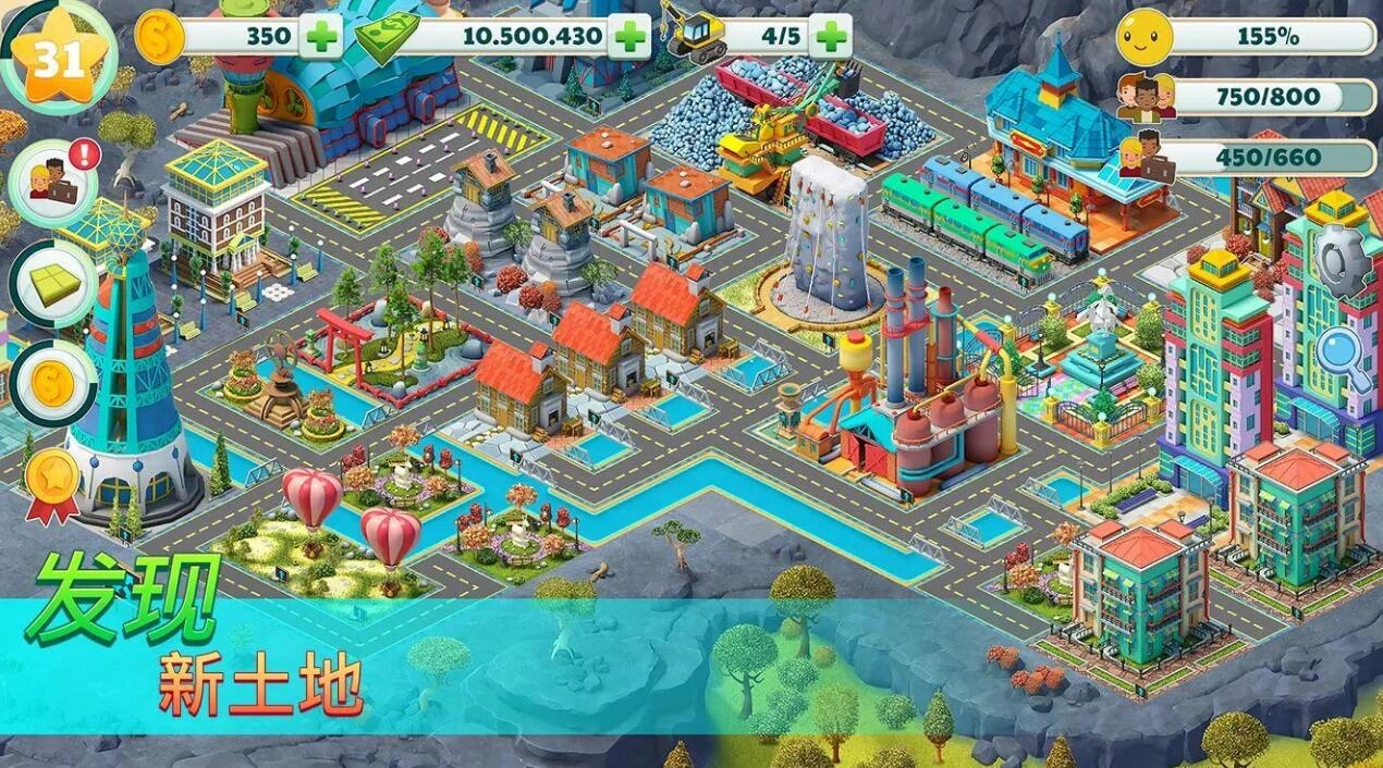 从一片空地开始,规划城市布局、建设基础设施、发展经济产业,满足居民的需求与期望,逐步将小城打造成繁华大都市,还能体验庄园经营、运输物流等特色玩法,发挥你的创造力与规划能力,快来当一名成功的城主吧!