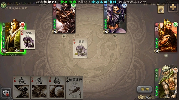 5、装备牌使用:装备牌分为武器牌、坐骑牌和防具牌,使用后持续生效。玩家可以根据自己的需要选择装备,以增强攻击或防御能力。