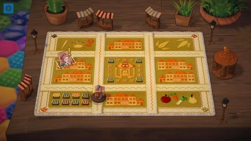 1、每一局游戏玩家都需要对两块花毯进行选择,然后从公用区的三个拼图中选择一块拿进手中。