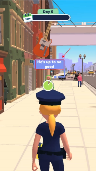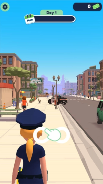 2、在游戏中玩家将会化身成为警察在游戏中的城市进行巡逻,你要做的就是通过滑动屏幕控制警察在街头抓捕犯人以及违法分子。