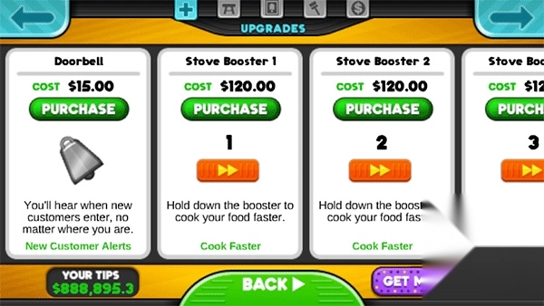 金币可以用来购买厨具,店内装饰