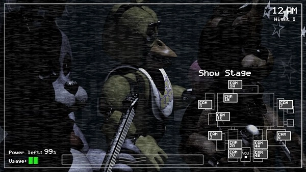 《玩具熊的五夜后宫》初代,也就是常说的玩具熊第1代,是一款恐怖题材的生存冒险游戏。在其手机版本中,玩家将化身为某披萨店的夜间保安,工作时间从午夜12点持续到清晨6点,只要成功熬过五个夜晚即可通关。值得注意的是,白天里看似可爱的玩偶们,一到夜晚就会化身成可怕的怪物对玩家发起攻击,你必须凭借自己的操作技巧,奋力撑过这五个惊心动魄的夜晚。