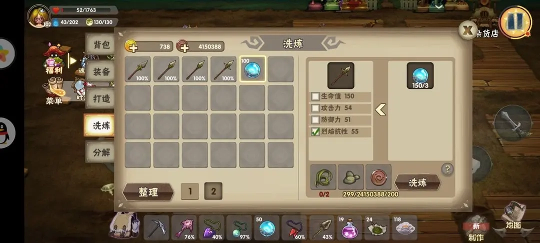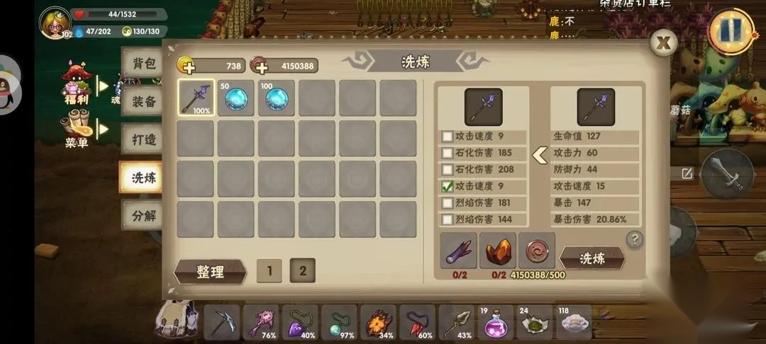 『重置属性』灵魂石能够对装备属性进行重置!具体操作可参考下图示例:首先挑选你想要重置的属性,接着点击灵魂石即可。不过重置属性需要消耗一定材料,比如藤蔓×2、石头×2和铜币×200。需要注意的是,重置后得到的属性数值是随机生成的。