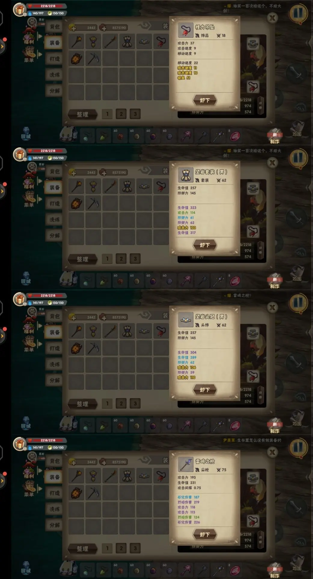 武器方面可以考虑属性伤害、攻击力、吸血、攻速、移速这些属性!吊坠推荐优先选择移速、攻速、吸血!装备则建议关注生命、抗暴、防御属性!具体可以根据自己的需求自由搭配选择!因为我的装备甲和头盔还没进行属性洗练,所以这次就不拿出来作为参考啦!