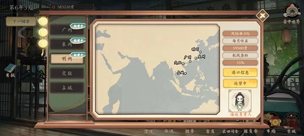 5、先无脑刷到关服,然后看看有没有地能买。最理想的配置是四个勾栏加一个质库,这样就可以无脑刷到下个月了。接着开启漕运,等漕运刷完,差不多就能刷海运了。