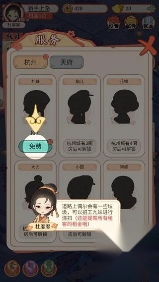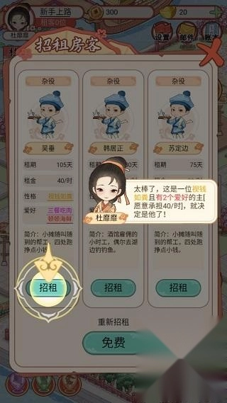 点击图中的“招租”按钮就能进入招租界面,在这个界面里可以选择不同的租客。