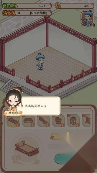 点击租客的房间,在弹出的界面里,挑选你想要布置的环境设施。