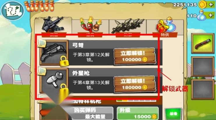 玩家还能够在开始新的关卡之前解锁新的武器。