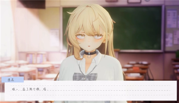 2、自动跳转教室场景,与夏音对话,选择温柔、关心选项,完成「教室邂逅」主线。