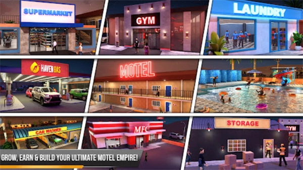 汽车旅馆模拟器游戏中多设施并行运营的设计让流程更具层次感,旅馆、超市与加油站之间相互带动,构建出更完善的服务链条。