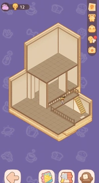 接下来点击建造按钮,首先得简单搭建第一层,铺好地铺,再安装一个楼梯,这样第一层就完成啦!