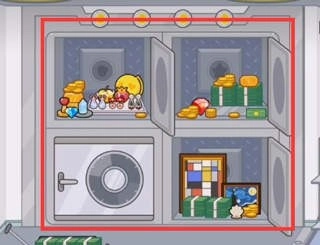 上到银行二楼,打开保险柜后,按照图形提示找到钻石、红心、星星和贝壳,再把它们依次放进去,保险柜就能开启,里面藏着不少宝物。