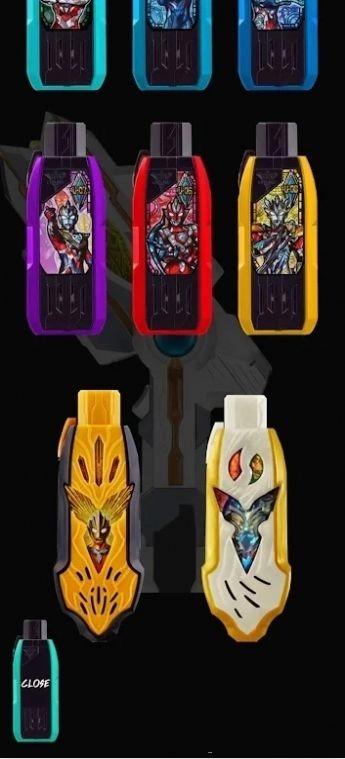 这里有100多张奥特次元卡牌,只要把不同形态的卡牌插入闪光剑,就能变身为德凯的任意形态!