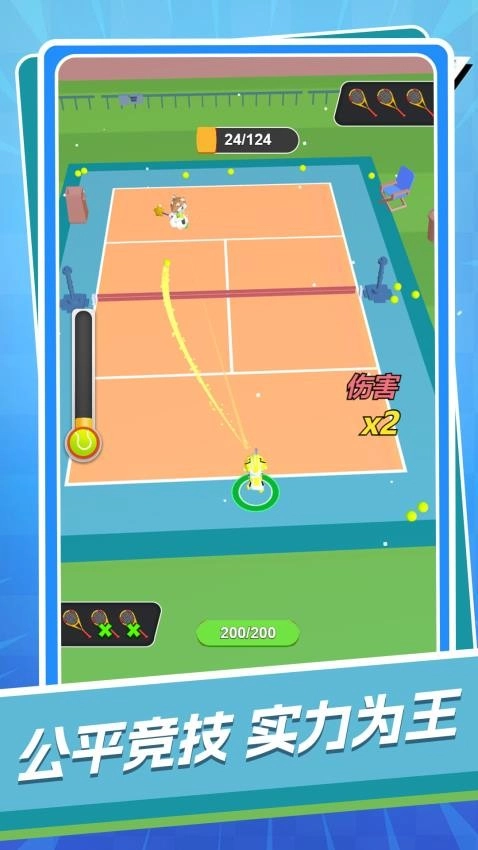 基础操作通过滑动来控制,朝着不同方向滑动能够打出直线球、斜线球之类的球路。长按屏幕可以进行蓄力,从而释放出强力击球,不过要留意把控力度,防止球出界。
