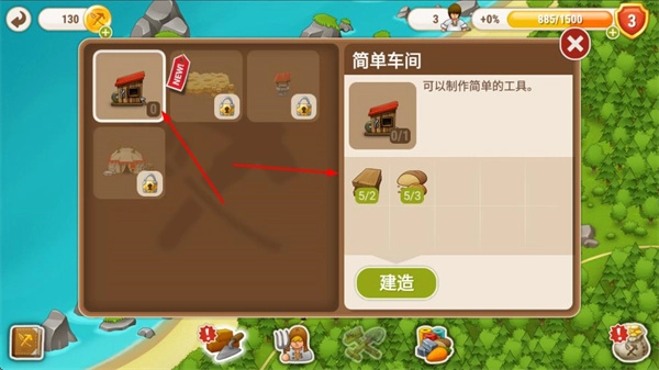 修建生产设施,打造简易工具,为农场生产与资源采集提供支撑。